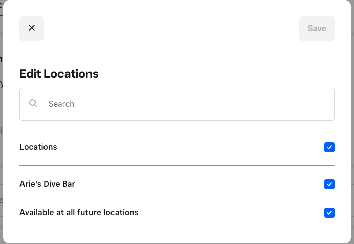 2. Select Locations and tick the locations this service is available at:
