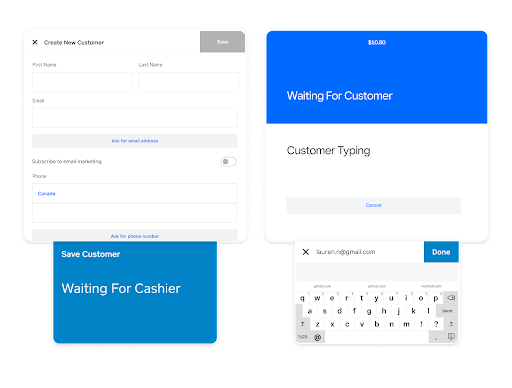 Previously, the process for collecting buyer data on the Register was less streamlined, asking for too much information while offering minimal customization on the buyer-screen. Now, you can collect emails and phone numbers directly from the buyer on the buyer-facing screen. If a customer already has an email or phone number in the system, it will be pre-populated and the buyer just needs to confirm it.