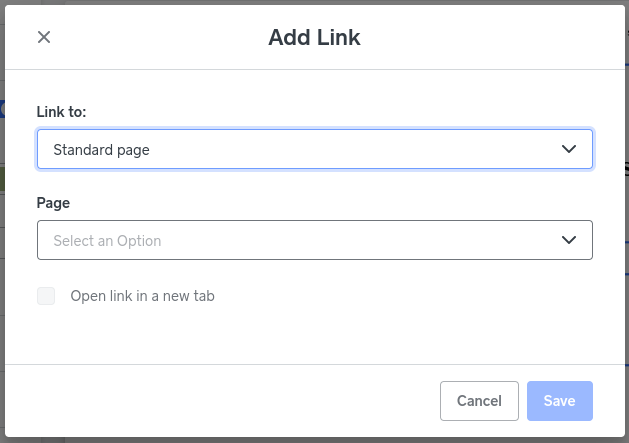 Select the page you want to link your visitors to from the Page drop-down menu. When you select a page, you'll notice that the option to Link to a section of this page will appear within the pop-up window.