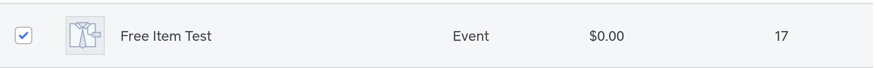 For screenshots, my item is labeled "free item test," but I created it as an event with a $0 cost, and added stock to it as well.