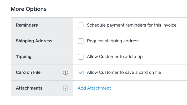 You can find out more information about Invoices & Cards on File with this Support Article too. Please let me know if you have any other questions.