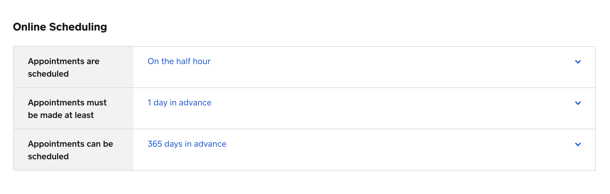 It sounds like you are looking for the option under Appointments > Online Booking > Settings