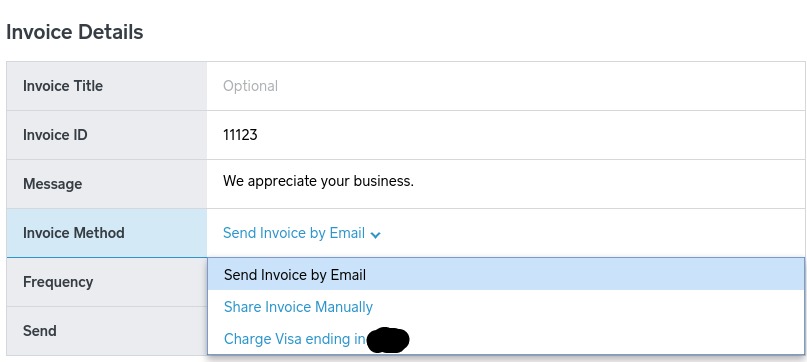 Yes that's correct @Danpsf! If you're using invoices, you'll want to click the drop down menu under Invoice Method. If your customer has a card on file, you'll see the option to charge the card that's saved.