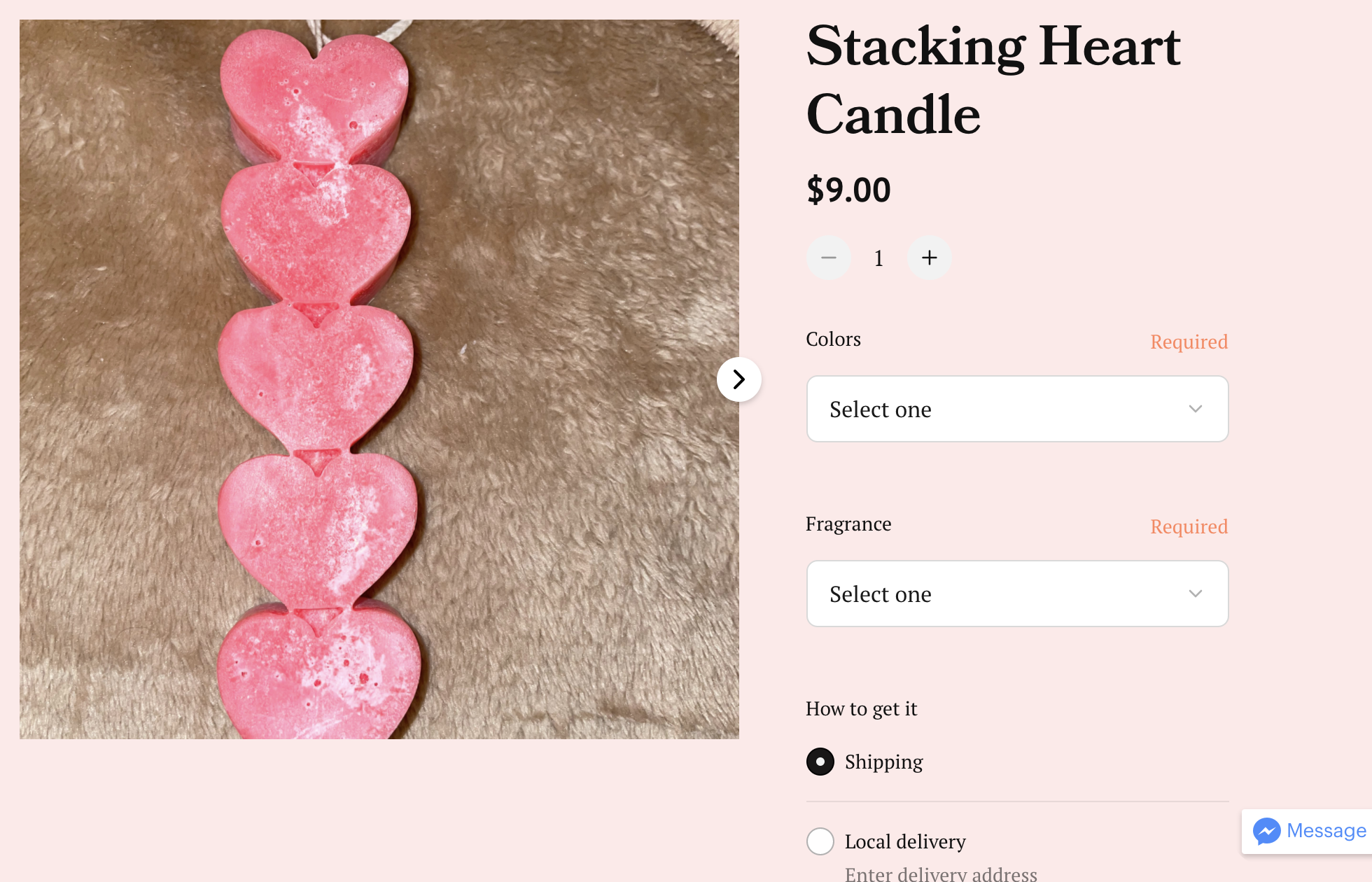 when you select shipping there are no modifiers. But when you select local delivery and enter an address in Toledo, Ohio, the modifiers for fragrances and colors appear.