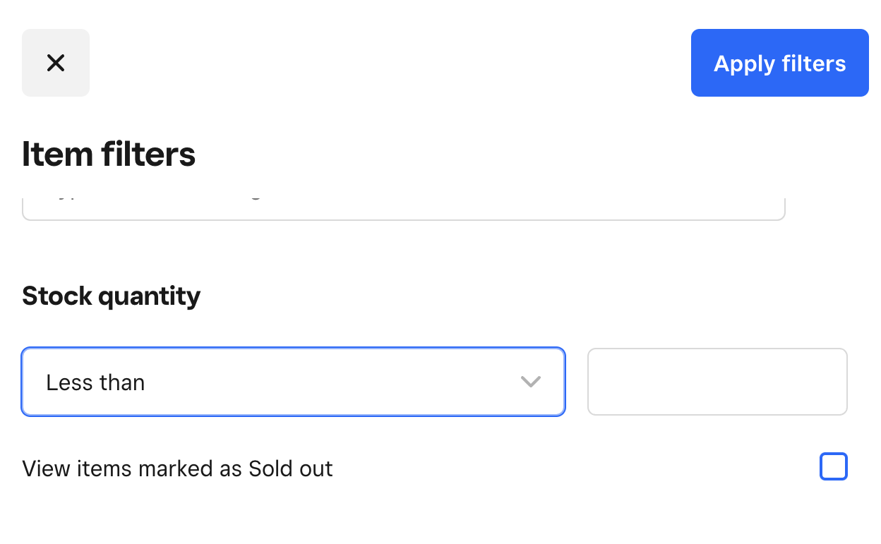 I need the ability to do Example B in the Square Item Library, not just the Online Site Items. Example A is useless for what I need since it’s showing me items that are Sold Out. I want to NOT see items that are Sold Out.