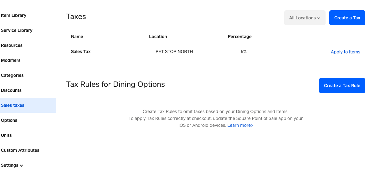 I cannot find the Tax Rules for Dining Options... I can add a tax, but that is it... no options. I used to be able to access this through the Items page but am getting redirected to Account & Settings. Once there, all I can do is Create A Tax... I have recently mirrored our old system into a new one and cannot make our system charge people the credit card tax when using cards. Is there another place to edit these options? Thank you for any help!