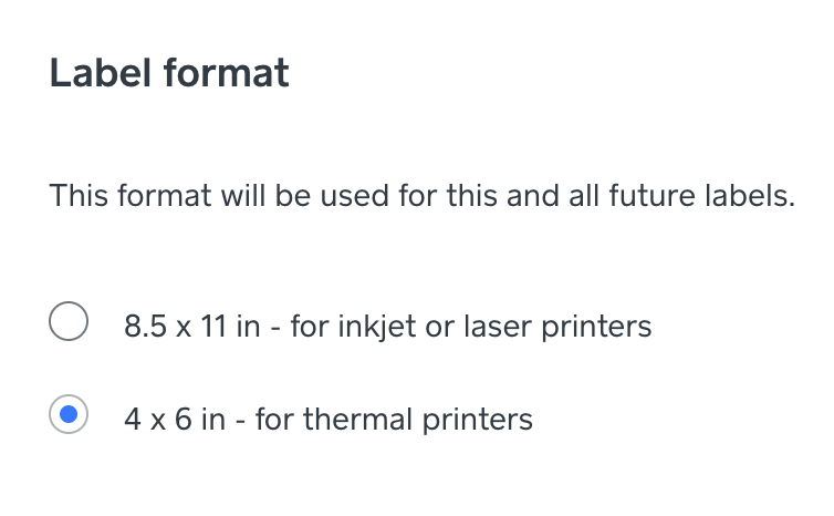 Note: this will update the label format for new orders. Any orders that are pending or have labels already purchased will still show the 8.5x11 format. I apologize in advance for any troubles this may cause.