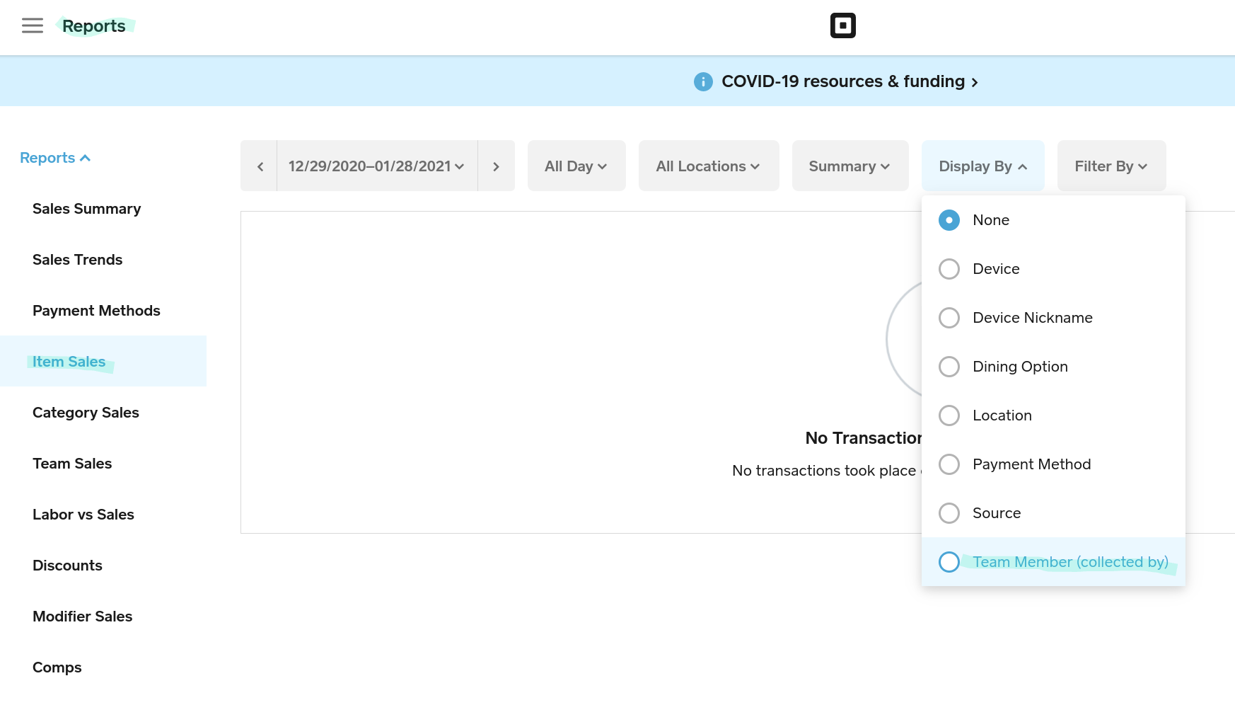 To test it out, please go to the Square Dashboard > Reports > Item sales > Display by Team member. Let me know!