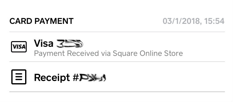 To confirm an Online Store payment from the app > tap Transactions > tap on the payment and below Card Payment you'll see Payment Received via Square Online Store.