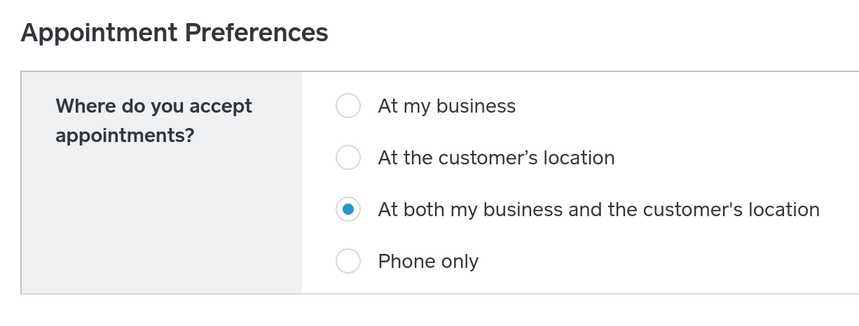 If you tick "At both my business and the customer's location" then save, does it then give the option to choose between your physical location and the customer's location?