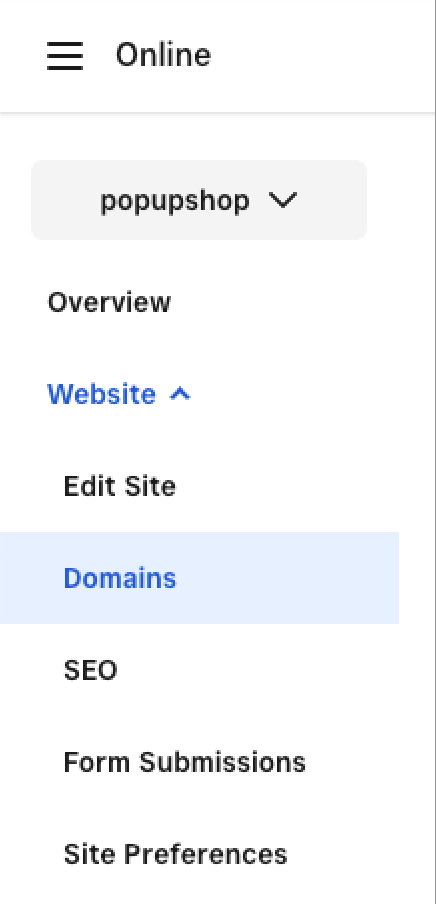You might be in your Point of Sale dashboard, rather than your Square Online dashboard. If you purchased your domain via Square, you can make edits via Website > Domain.