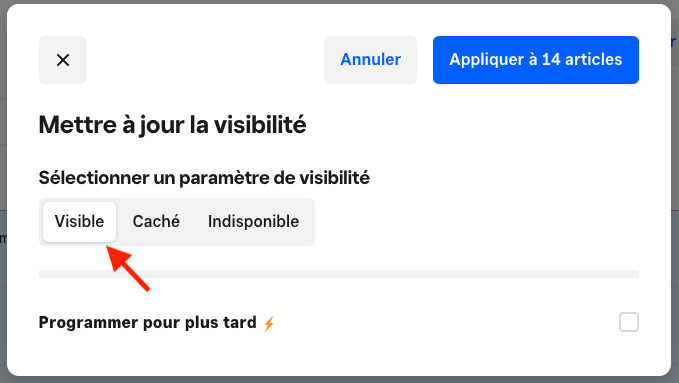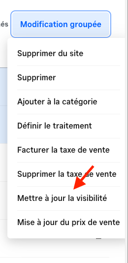 3. Cliquez sur Modification groupée et choisissez Mettre à jour la visibilité