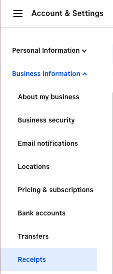 Needing help with how to have information for clients health fund show up on receipts, square says go to accounts and settings in the dashboard then business and receipts but that option isn't even there. Please help someone! Clare