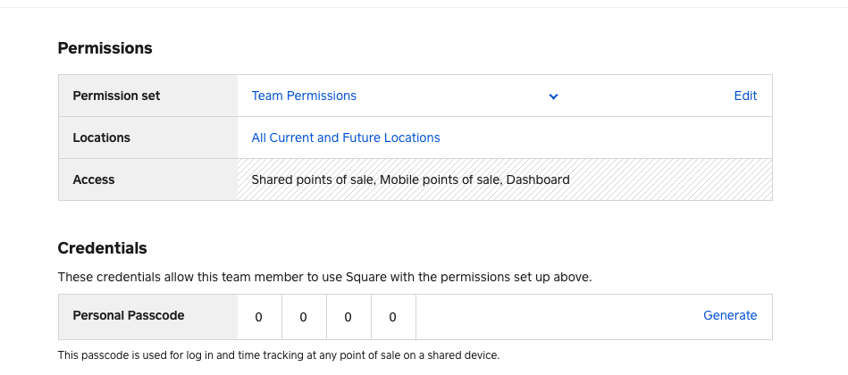 @JoJos_Greens have you already set up team member profiles? Once you do you can add passcodes to their profiles via the Team section of your Dashboard.