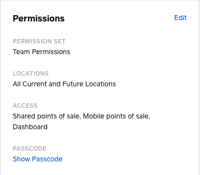 Click on the Team Member you want to set a passcode for then under Permissions "Edit'"