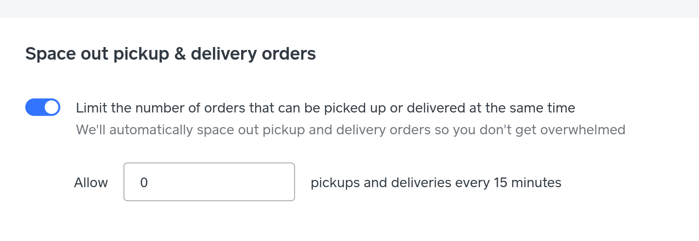 Today was the first day we used the new feature that supposedly only allows a set number of menu items to be picked up per every 15 minute increments. I set the maximum number of orders to be picked up at 18/15 minutes - we ended up with more than 40 orders for our 12:00 time slot, 24 orders for our 12:20 time slot, so on and so on...