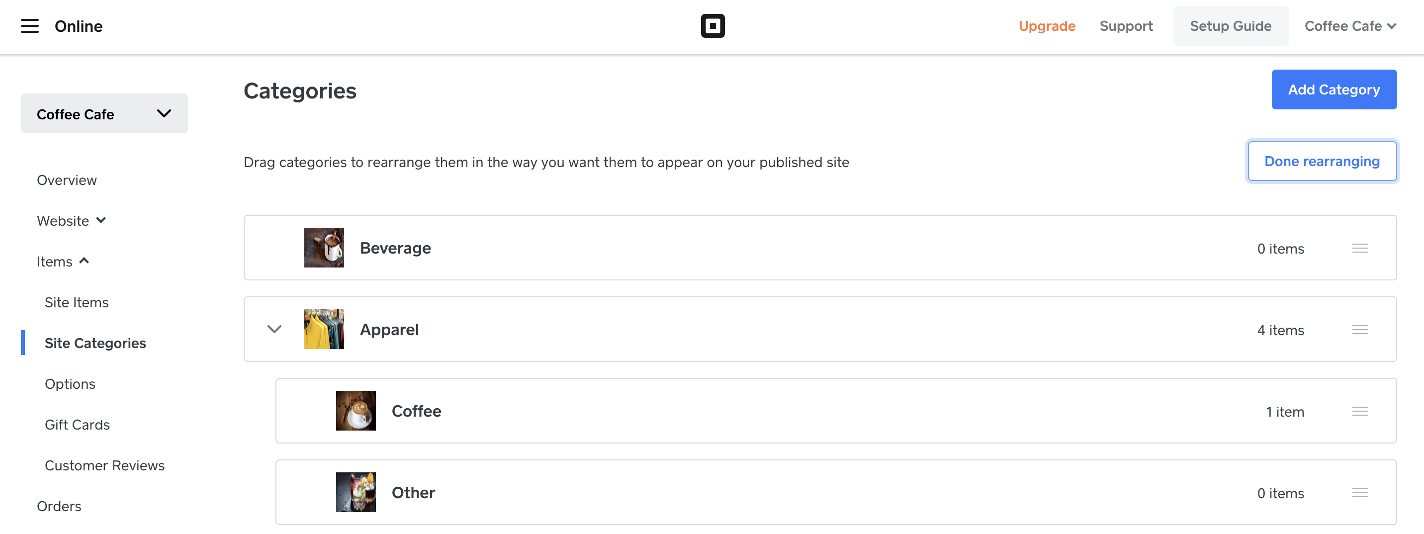 Until very recently we have been able to move items around within categories using the "Arrange and Add" feature in the online store. Now when I try to move items, the site stalls and I get the spinning circle icon. I have to back out of that page to get the spinning to stop. This has been going on for a couple of weeks now and I would really like to be able to arrange the items in my online store to have certain items at the top! I've tried in several different browsers and continue to get the same result. Any suggestions would be appreciated!