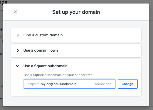 Click the "Use a Square Subdomain" to move to the free address.