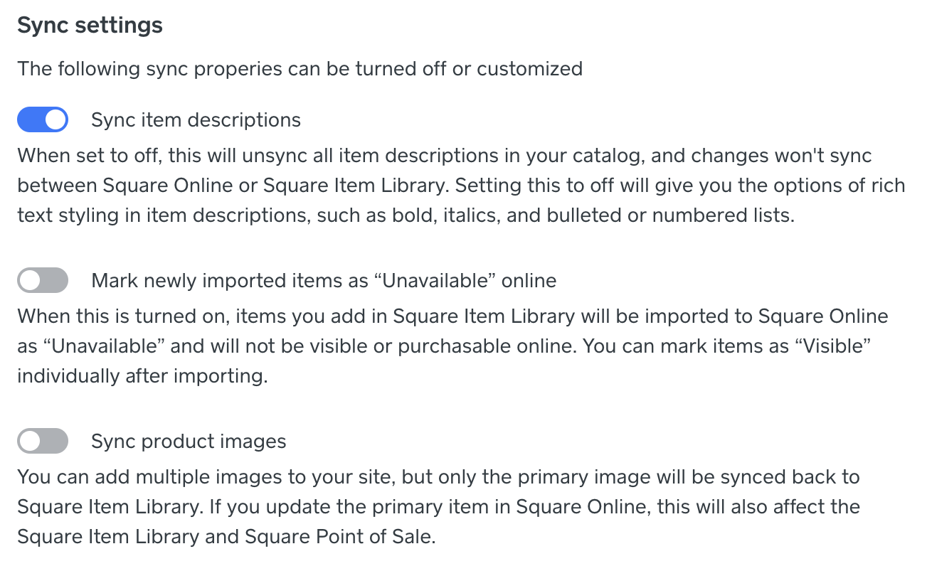 You can find this setting by going to your Square Online overview page > Settings / Shared Settings > Item Sync