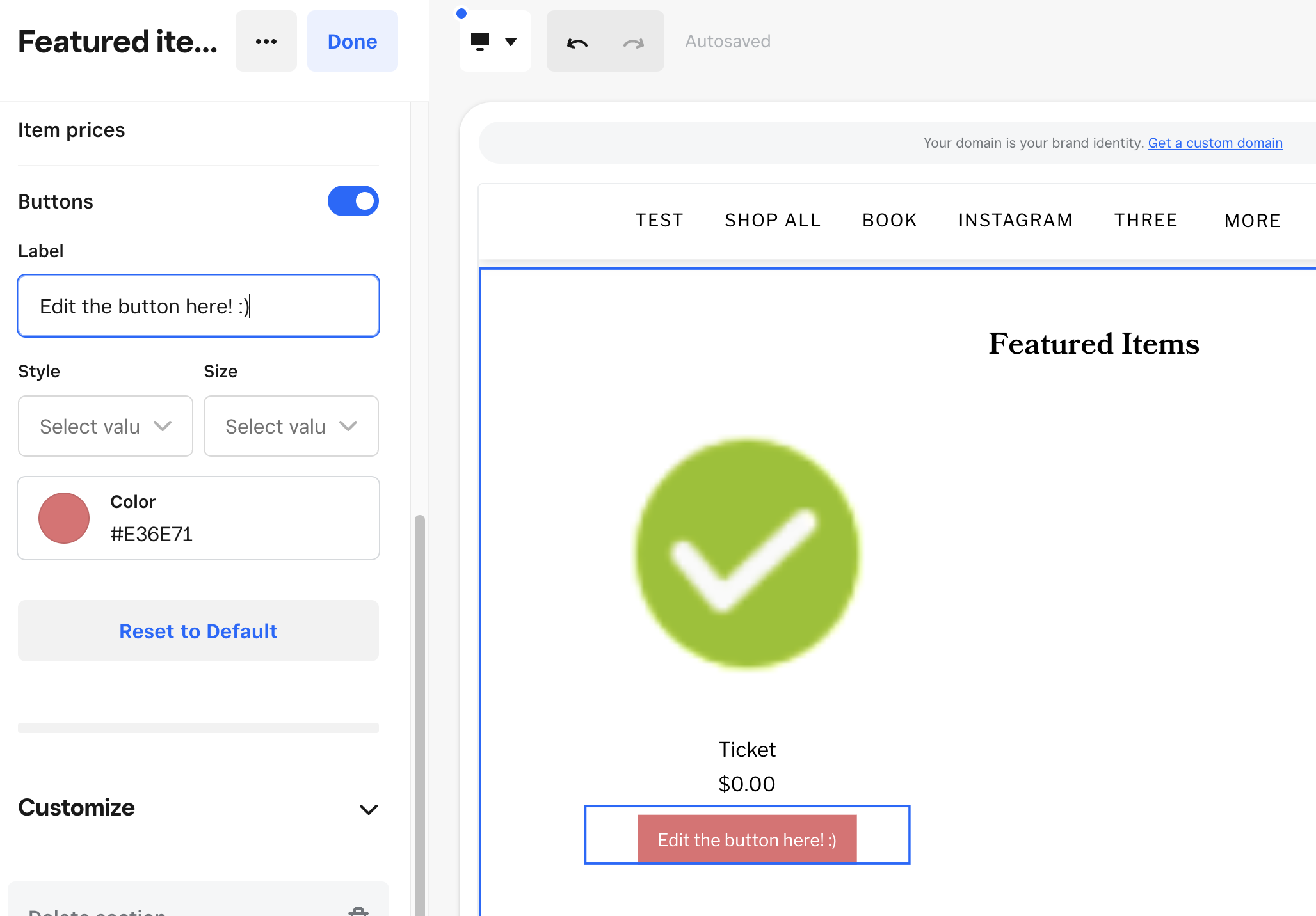 Change Featured Items Shop Now Button