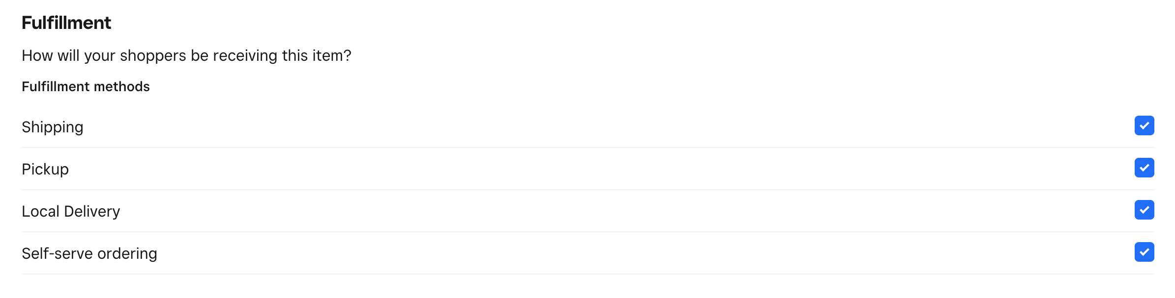If it's just the new item, are you able to check the item listing on the Square Online overview (not the regular Inventory area on the main Square Dashboard)? You can go to Items > Site Items then click on the item in question to view and edit its online properties, including fulfilment methods: