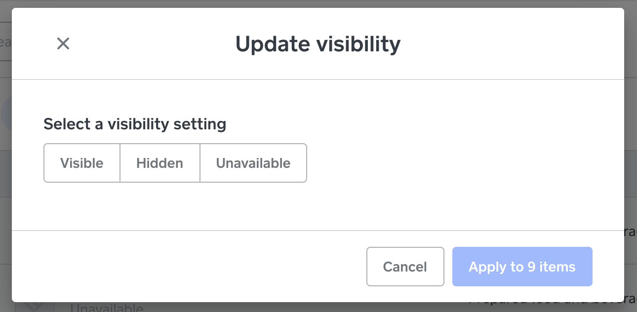 Yes for our daytime hours I make our late nite options unavailable and then turn them back on before service. When we are open for our late night hours they are turned to available and our daytime menu is turned to unavailable. I know about the visibilty on the items. I have been running an online store through Square at a different location for over a year and this online store for close to 2 years. This is definitely some type of glitch. There will be no problems with ordering between 11pm and midnite. At midnite it shuts down even though all items are available and the time is set on featured categories, pick up and delivery and location. It won't show the menu between 12 am and 1 am at all on the website or QR codes. At 1 am the menu shows back up but people are unable to order. It does all this on it's own. Our kiosk still takes orders but we really need the website to work for pick up orders. We have absolutely no problems during our daytime hours with the online store or QR codes