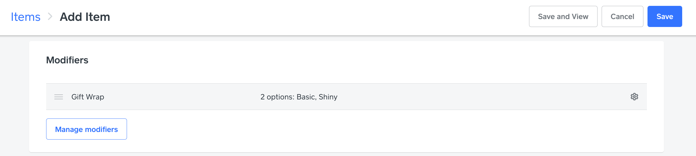 You'll now see Gift Wrap in the Modifiers section of the Edit/Add Item page: