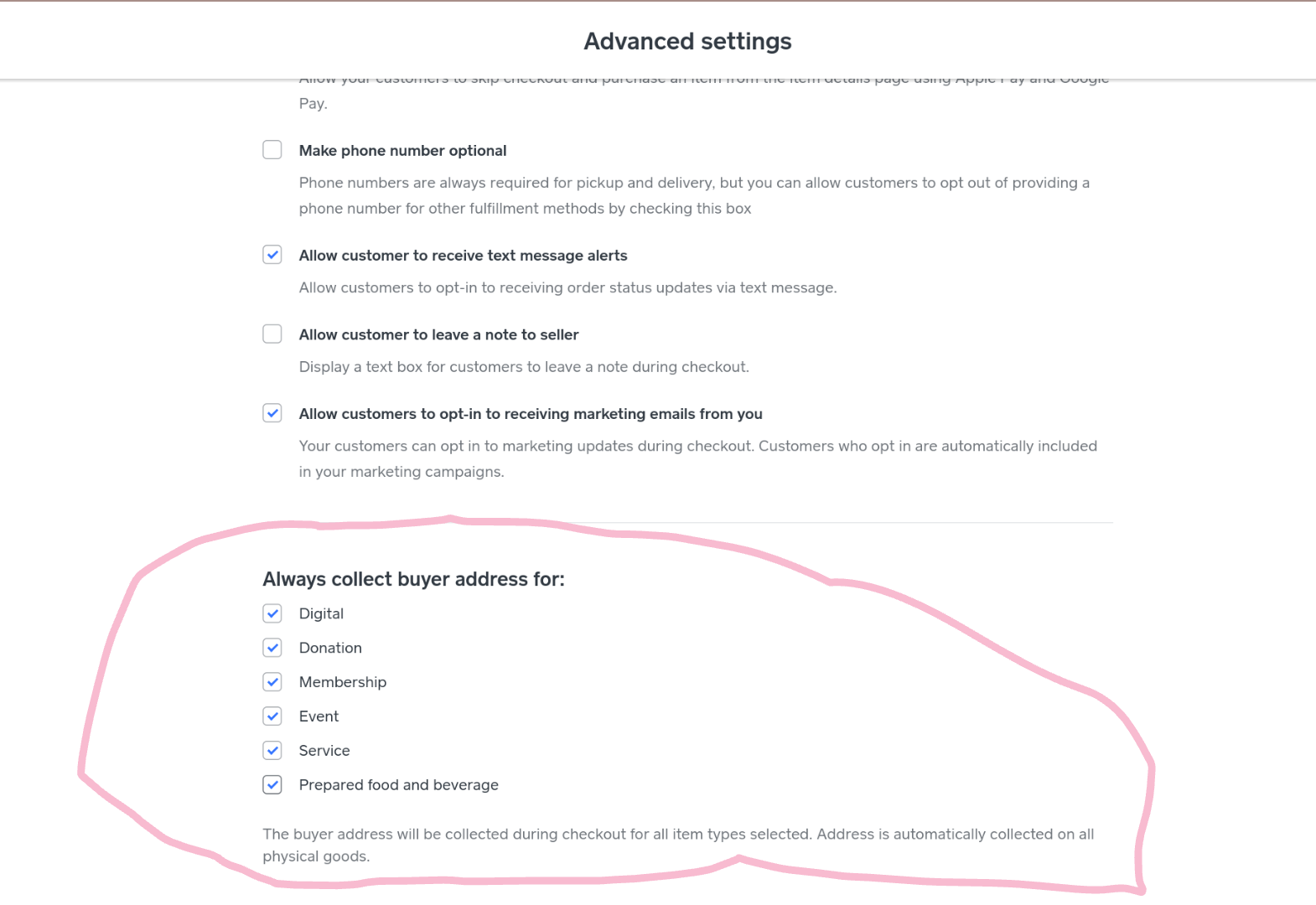 I set up a link to sell items online, but I can't find a way to collect the customer's mailing address when they purchase the item. Can someone please tell me how to do this?