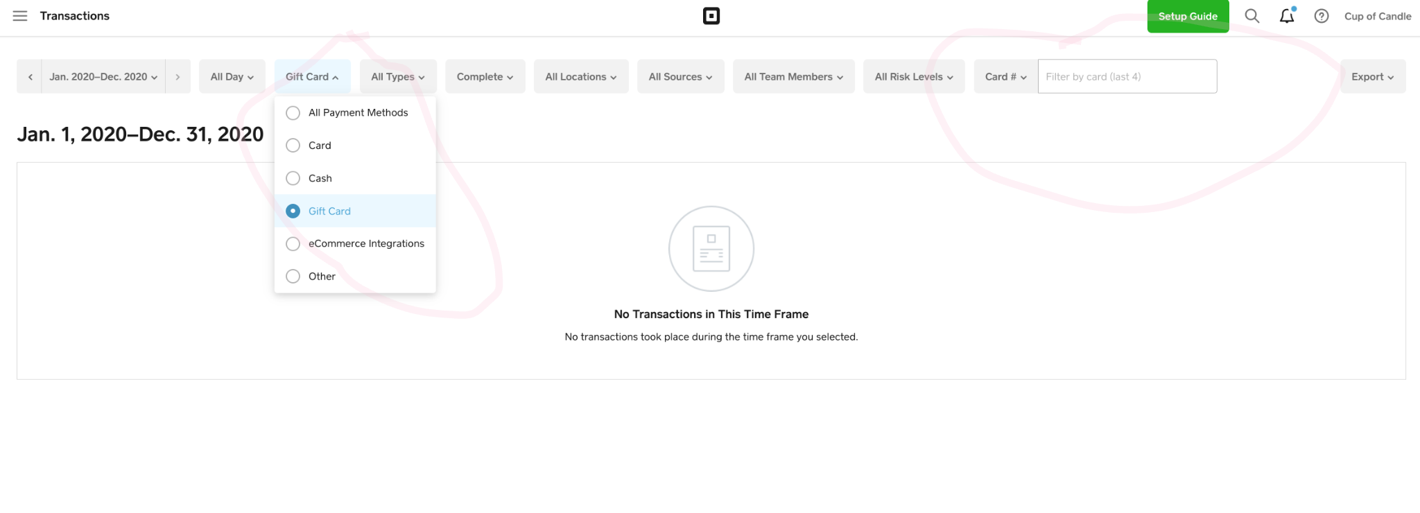 Hmmm. Can you try going to Square Dashboard > Transactions > Select time frame > All Payment Methods > Gift Cards > and then search by the last 4?