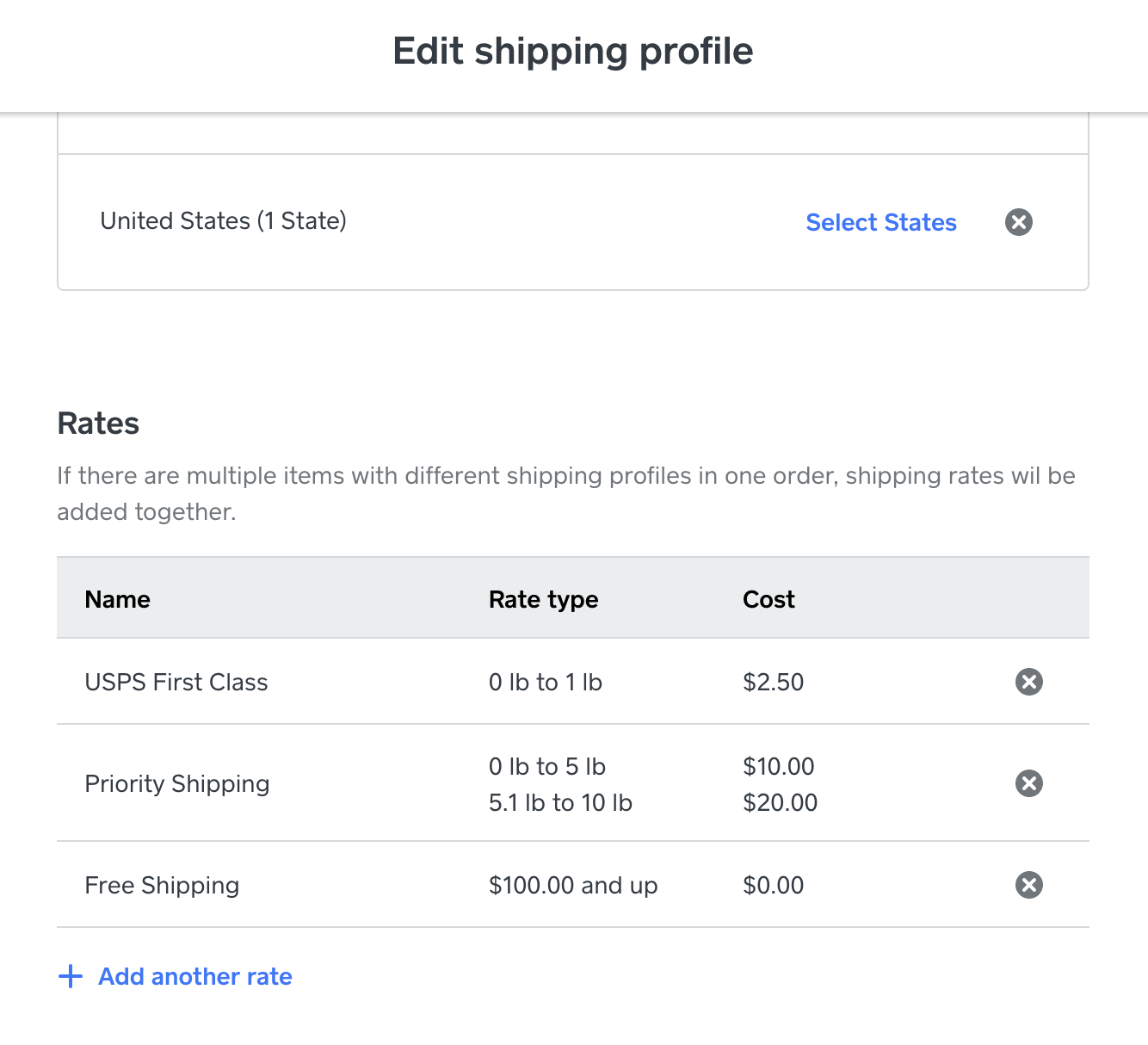For the other shipping rules, you will need to find a weight/price combination that works best for the majority of your items. You can always change or edit the shipping settings if you find you are under or over charging for shipping.