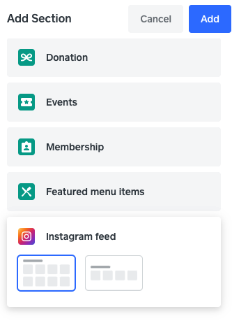 And you'll have the option to add a smaller Instagram section to your page, for example: