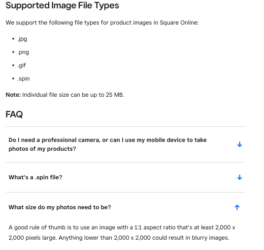 There are some requirements for your Square Online Product Images. Please see the details below.