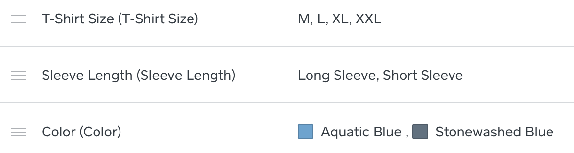 I'm trying to better understand how the order of item options is controlled. I have men's and woman's t-shirts each have 3 options (color, size and sleeve length). On the two detail pages these options are displayed in different orders. I want (top to bottom) to have them the same and in the above order (choose color, select the size then choose the sleeve length).