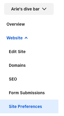 1. In your Square Online dashboard, select Website > Site Preferences.
