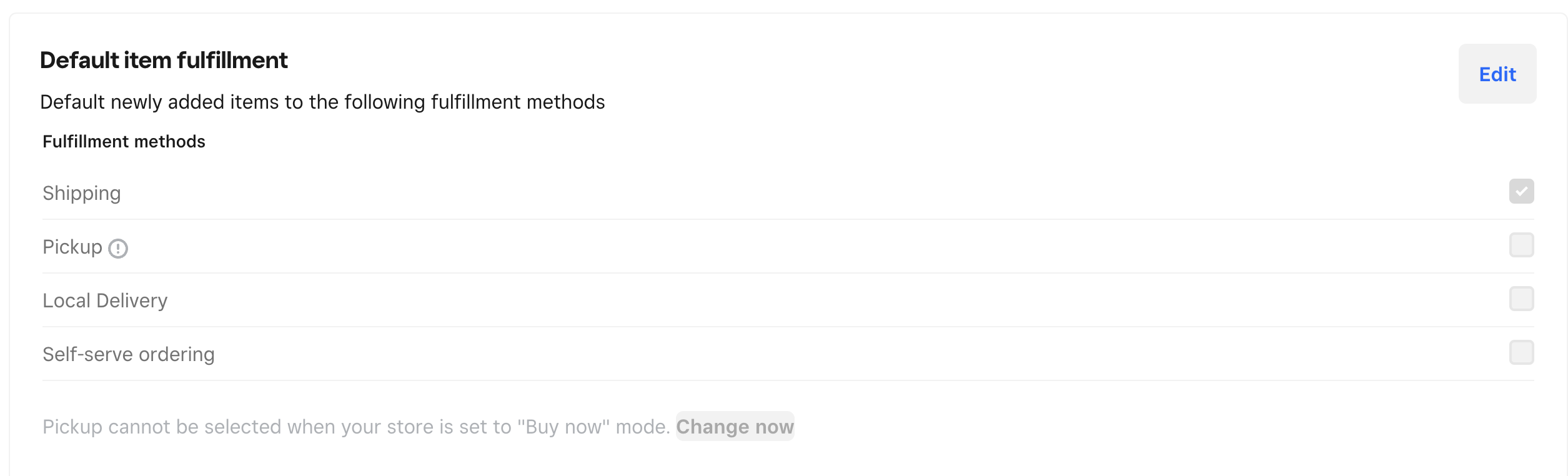 One way around splitting out shipping vs other fulfillment methods is to create a button an external