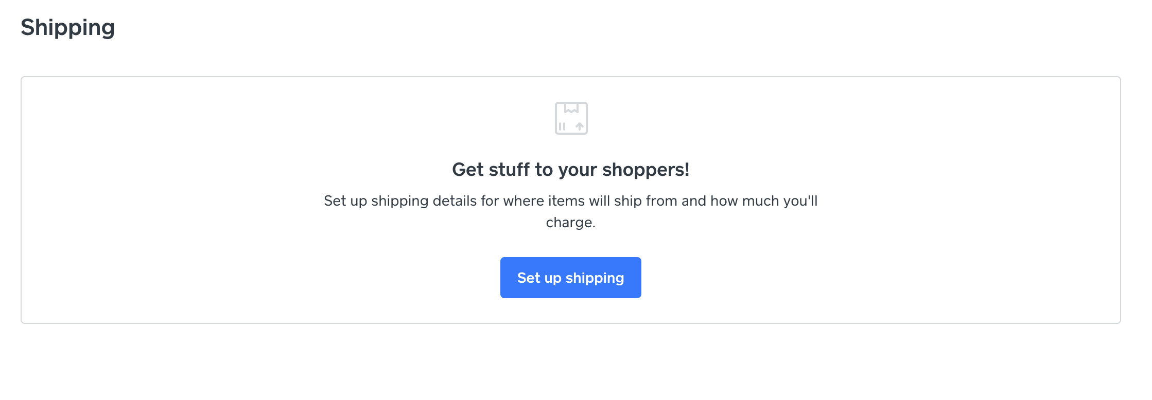 I think the reason this is happening is because you only have a Pickup location setup under the Settings menu. If you click on Settings>Shipping you will see a prompt to setup.