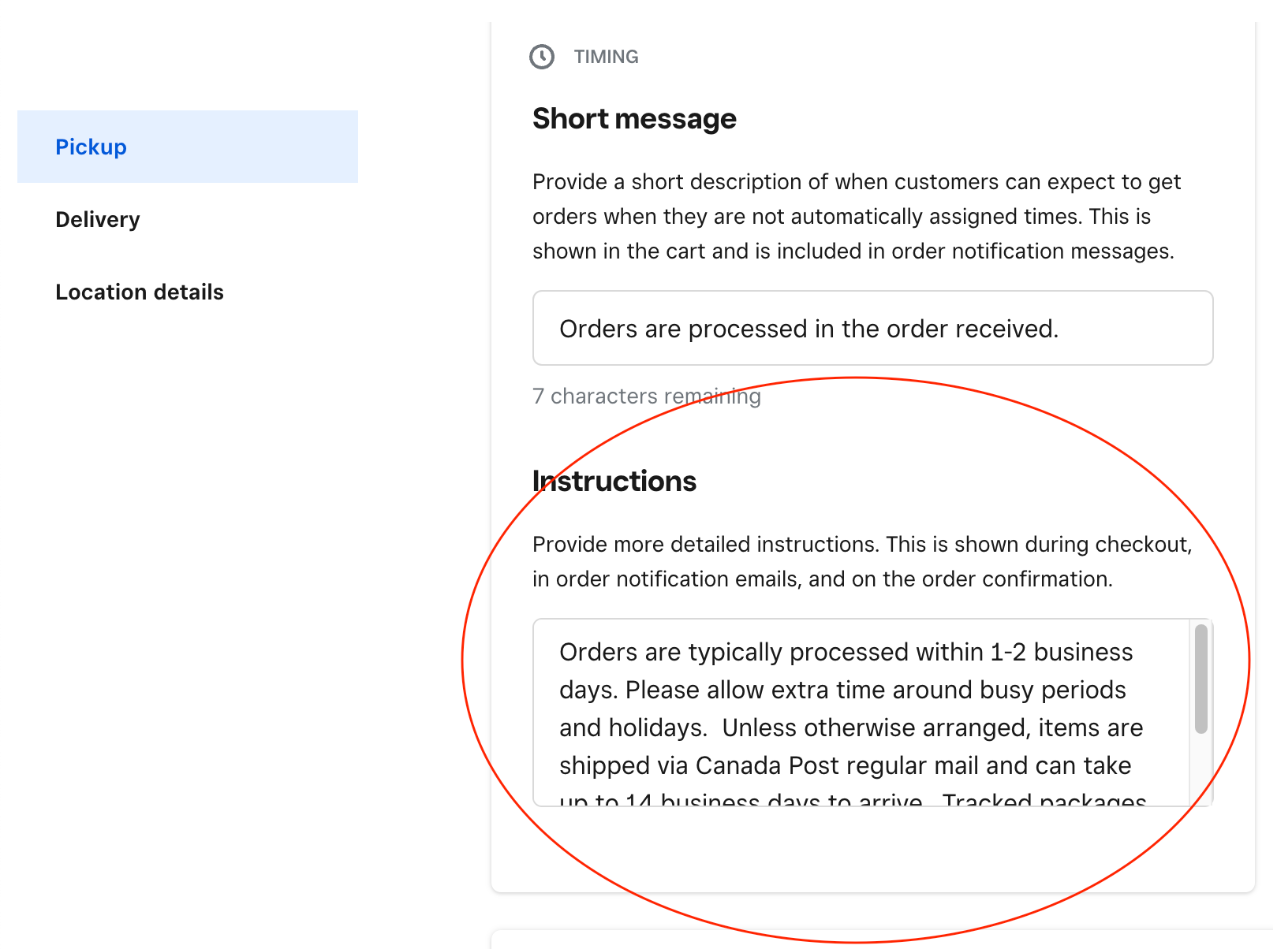 You can actually edit the text in the pick-up instructions by completing the following steps: