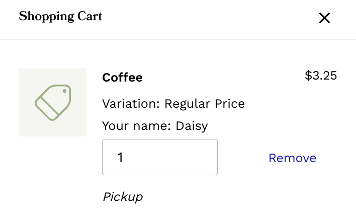 The text box modifier will appear like this in the cart once your customer has entered text into the field: