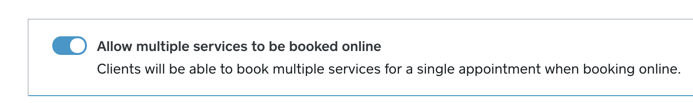 There is a setting on your Appointments Dashboard that will allow multiple services at once.