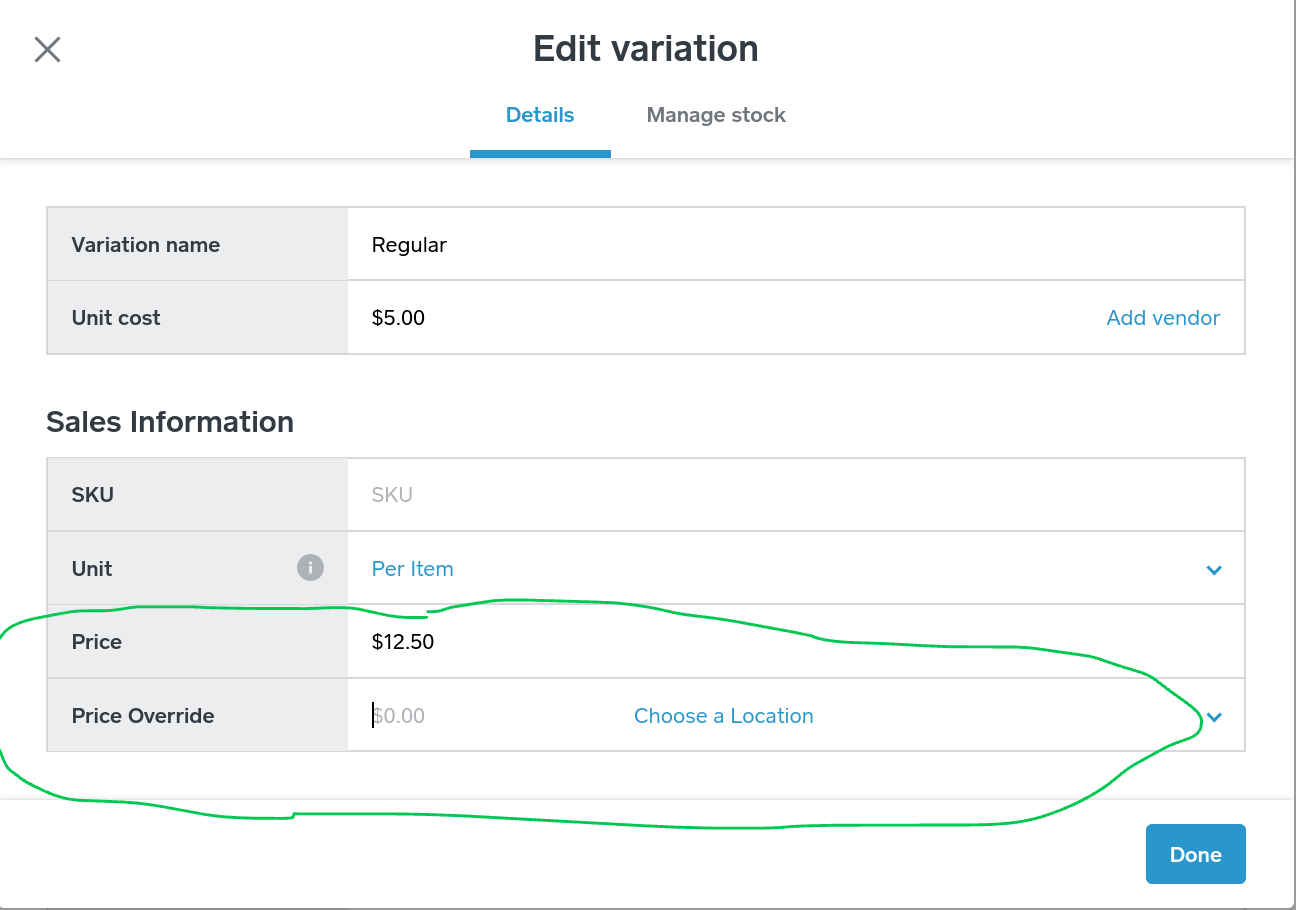 I have found a help article which tells me to visit items in my online square dashboard, and then under ‘Price and Inventory” click ‘edit per location’ . I do not see this option anywhere . Can some one please show me how to make this choice appear ? I am at my wits end with this.