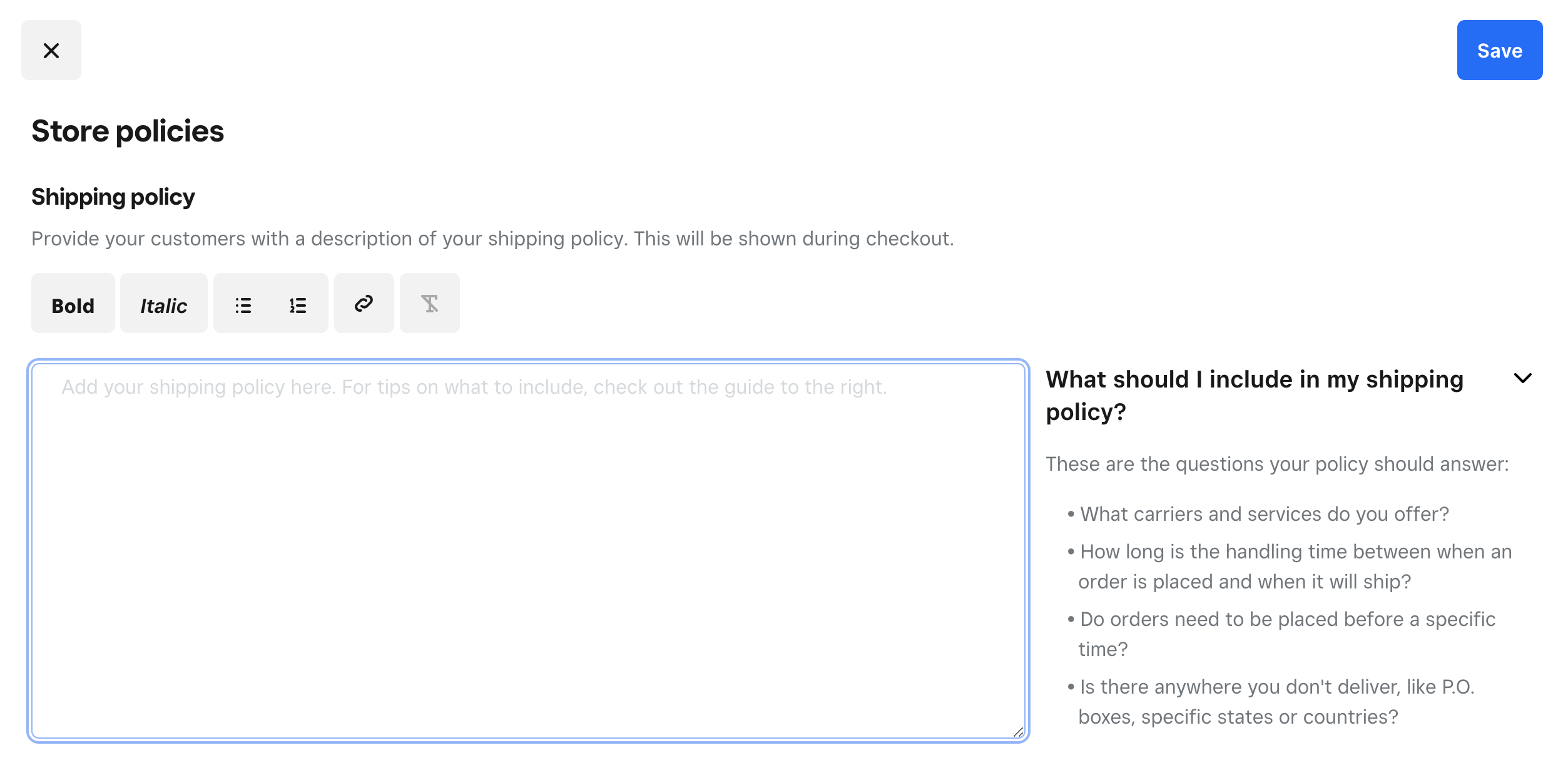 I think the Shipping Policy section would be perfect for this! Navigate to the Square Online dashboard, then click Settings > Checkout > Store Policies. The information you enter here would then be displayed on each item page near the description.