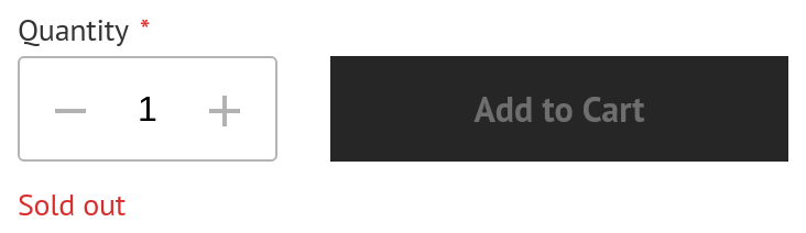 This is what your customers would see if they tried to add one of these items to their cart after you've set the stock to 0: