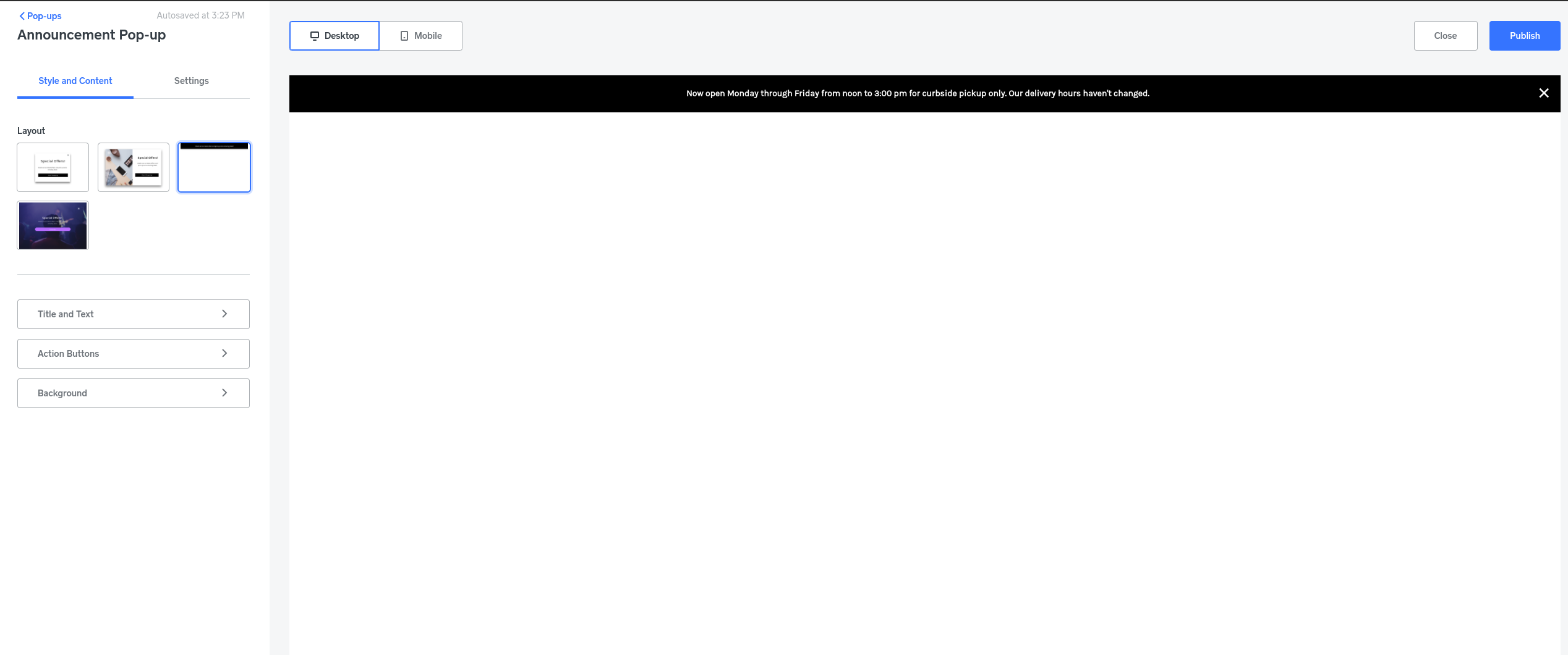 You can then select the Layout to be a banner, and change the text and background colour. Hope this helps, let me know if you have any questions!