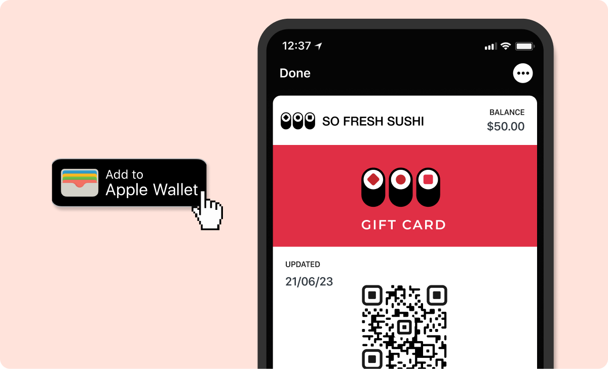 This is what the gift card would look like in your customer's Apple Wallet: