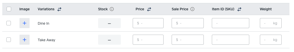 3. Enter the Variation name, e.g "Dine in" or "Take Away"