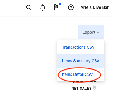 The Transaction Details export includes notes that have been added to your Sales as well. To download this report, head to Transactions > Export > Item Detail CSV