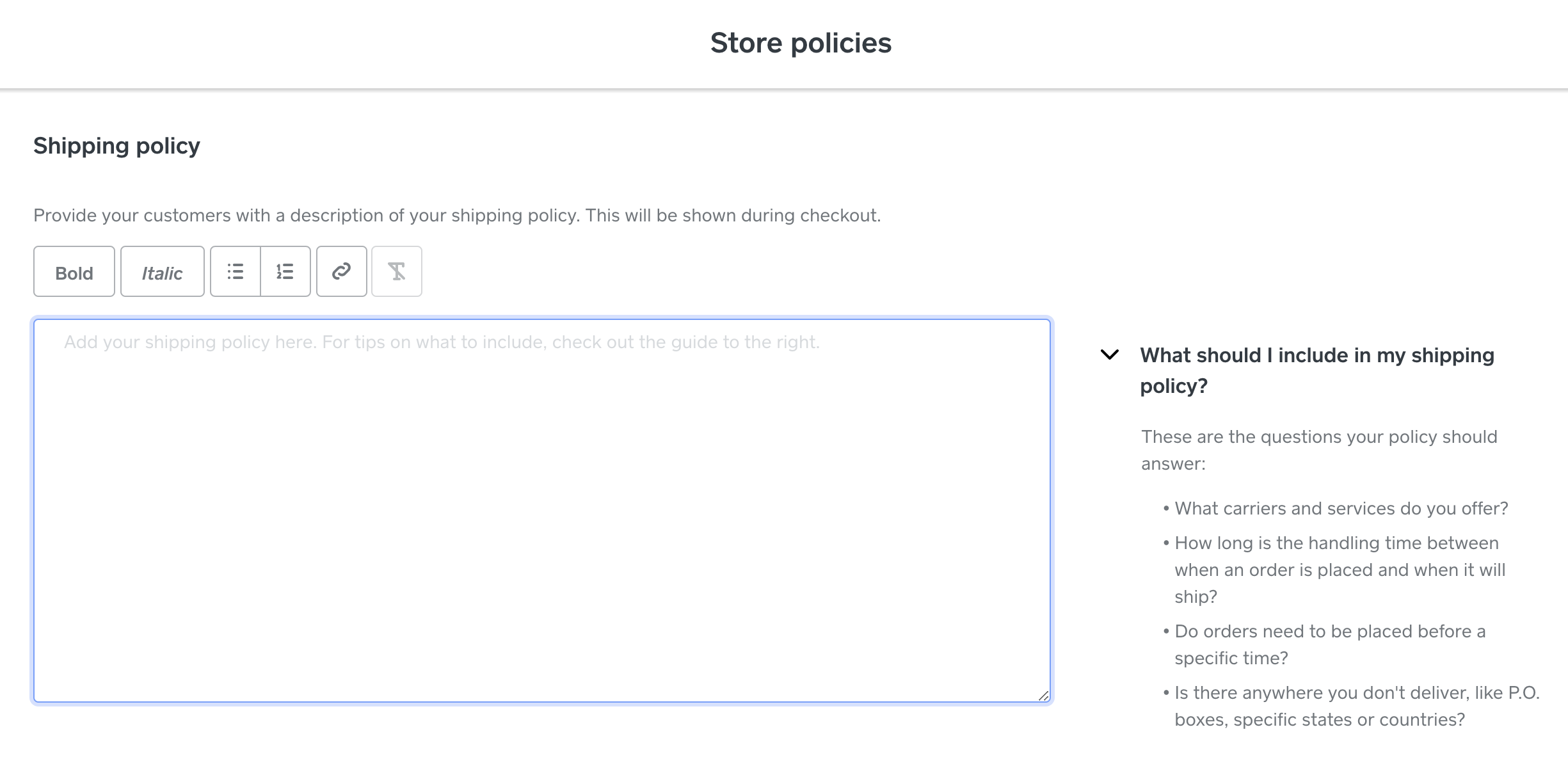 Have you had a chance to setup your shipping polices for your website? The editing option is under Settings > Checkout > Shipping Policies.