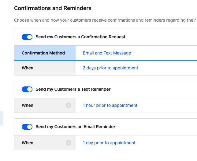 Especially now that I'd be migrating from my existing booking platform, clients would receive a random text about an appointment they booked weeks ago and that is only going ahead in a month or so.