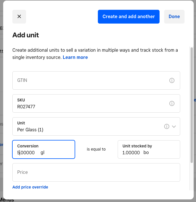 3. Type in your new unit name in the Select Unit section, e.g bottle, glass, etc.