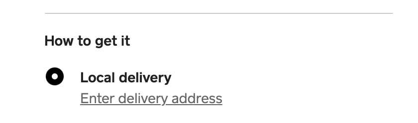 When customers select local delivery on item page a message comes up saying, "Must enter address to add to cart".  There is no place for them to enter the address. There used to be a box that popped up and it no longer does